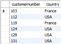 WHERE country = 'USA' OR country = 'Canada' OR country = 'France'