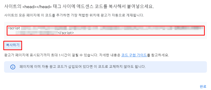 <head> 와 </head> 사이에 코드 붙여넣기